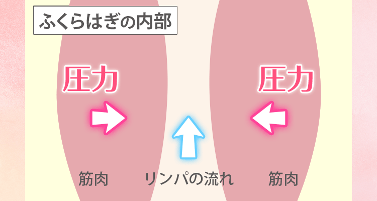 人間工学に基づいた独自テクノロジーである分散型加圧システムを導入し、適切な圧力を筋肉に与えることにより、リンパ管の流れをスムーズにし、むくみを解消することができるのです。